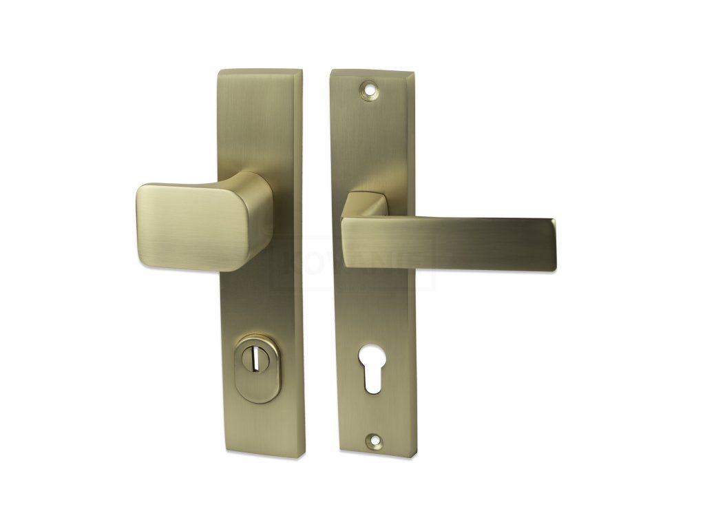 Solídny až masívny, odolný a veľmi moderný – model C201 už svojim vzhľadom vyjadruje odolnosť voči akýmkoľvek pokusom o poškodenie či dokonca prelomenie nepozvanými návštevníkmi. Štítové riešenie vyznáva moderný prístup k designu ochranných kovaní na vstupných dverných - hranatý štít v kombinácii s plochou úchopovou guľou predurčuje model C201 na vstupné dvere do moderných domov a bytov, rovnako tak minimalistická vnútorná kľučka bude určite v súlade s moderným charakterom vášho interiéru. Masívnosť štítu aj gule potom dokladá bezpečnostné kvality modelu C201. Na výber máme dve vydarené materiálové varianty - tradične elegantný matný nikel a luxusný česaný bronz. Stačí len zvoliť tú správnu rozteč štítu (72 alebo 90mm).
