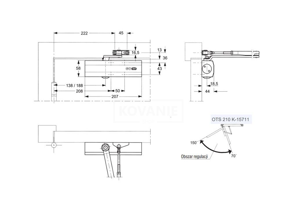 Dverný samozatvárač G-U OTS 210 - iba teleso bez ramena