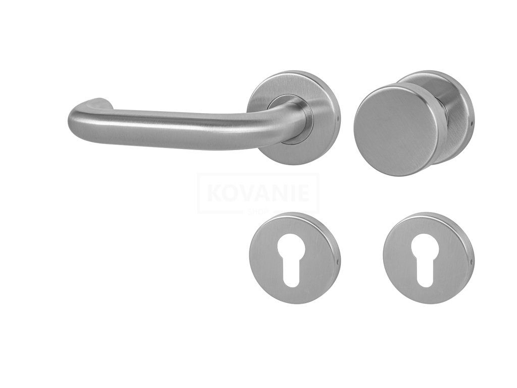 Rozetová kľučka na interiérové dvere s okrúhlou rozetou z vysokokvalitnej nehrdzavejúcej ocele, známej ako nerez a je povrchovo upravená. Rozeta má priemer 54 mm a hrúbku 9 mm. Je farebne stabilná a odolná voči opotrebeniu. Kovanie je testované podľa normy ČSN EN 1906:2012 na 200 000 cyklov.
