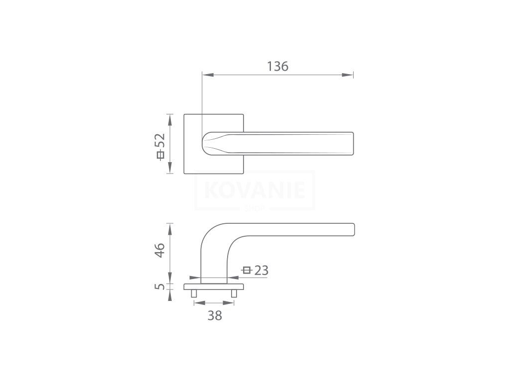 Rozetová kľučka na interiérové dvere s hranatou rozetou je vyrobená z materiálov vysokej kvality - mosadz a je povrchovo upravená. Rozeta má rozmery 52 mm x 52 mm a hrúbku len 5 mm.